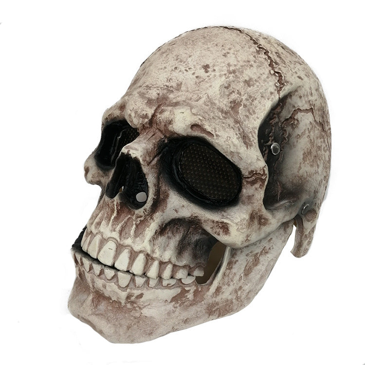 This realistic skull mask is designed to deliver a chilling and lifelike appearance, perfect for Halloween, cosplay events, or themed parties. Crafted with detailed features, the mask captures the texture and structure of a weathered skull, complete with aged bone coloring and visible cracks for added authenticity.